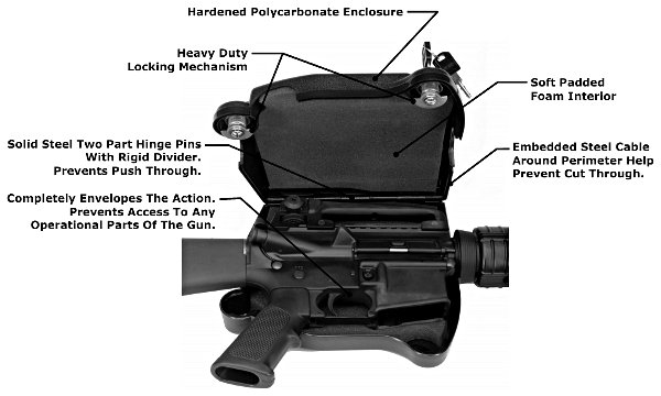 | Dual locks on the Life Jacket 4 provide added security to your AR15 or M16 rifle. Constructed of high-strength polycarbonate, the LJ4 is virtually impenetrable. It also features a steel-reinforced perimeter and soft foam-padded interior. |